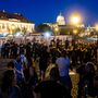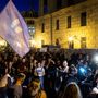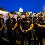 Rendőrsorfal várta a tüntetőket a Sándor-palotánál