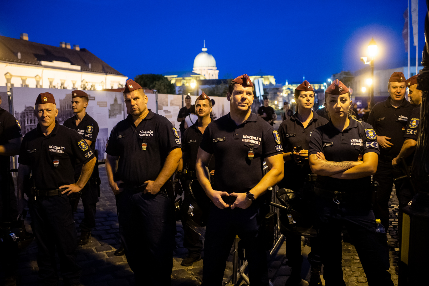 Rendőrsorfal várta a tüntetőket a Sándor-palotánál