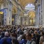 Nyolc órán át kellett sorban állnia annak, aki látni akarta a Szent Péter-bazilikában felravatalozott Ferenc pápát szerdán. A sorba a Szent Péter téren lehetett beállni, ahova csak többszörös biztonsági ellenőrzés után lehetett eljutni. A bazilikába a jubileumra megnyitott szent kapun lehet bejutni, a pápa nyitott koporsója a főoltár előtt áll. A 11 órai kezdésre mintegy 20 ezren gyűltek össze a téren, többen rosszul lettek a melegben, rajtuk a tér közelében állomásozó mentősök segítettek.