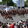 Nagyszabású katonai díszszemlét tartottak Párizsban, a Champs-Élysées-n a francia forradalom kitörésének 236. évfordulóján. A parádét a francia légierő műrepülőegysége nyitotta meg, a látványos díszszemlén összesen több mint hatvan repülő, 34 helikopter, kétszáz ló, 247 szárazföldi jármű és több mint ötezer katona ment végig a nagy tömeg előtt.