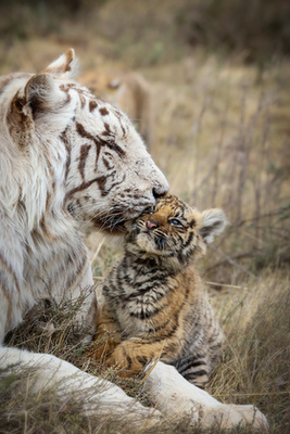 Tibo a fehér tigris kölykeivel