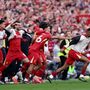A Liverpool 5–1-re legyőzte a Tottenham Hotspurt az angol bajnokság rangadóján, ezzel bebiztosítva 20. bajnoki címét, amivel beérte az örökranglistán a Manchester Unitedet. Szoboszlai Dominik két gólpasszt adott a mérkőzésen: a 17. percben Luis Díaz, majd a 63. percben Mohamed Szalah találatát készítette elő. A Tottenham szerezte meg a vezetést Solanke révén, de a Liverpool hamar fordított Díaz egyenlítése után Mac Allister és Gakpo góljával. A második félidőben Szalah és egy Udogie-öngól tette teljessé a hazai sikert. Szoboszlai, aki első angol bajnoki címét szerezte, a 69. percben hagyta el a pályát.