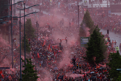 Bár már négy fordulóval a bajnokság zárása előtt biztossá vált, hogy Szoboszlai Dominik csapatával angol bajnok lett, az igazi ünneplésre az utolsó fordulóig várni kellett. A bajnokcsapatot megillető ünnepi felvonulásra hétfőn vörösbe öltözött a város, több tízezer ember ünnepelte egy nappal a bajnoki trófea átadása után a Liverpool játékosait, ahogy végigvonultak a város utcáin.